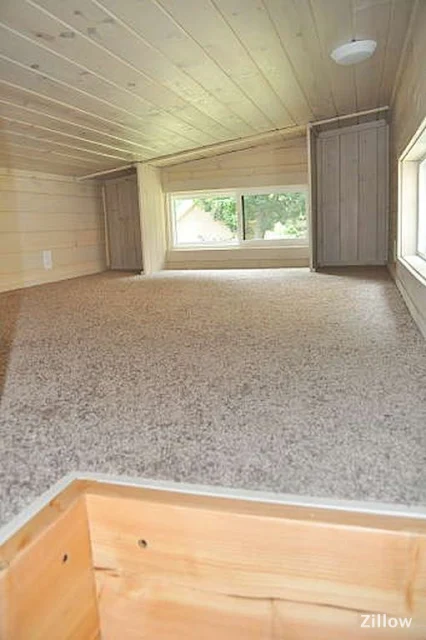 The home measures 261 sq ft in total with 171 sq ft of space on the main floor and an additional 90 in the loft. There's spray foam insulation to keep the interior temperature regulated, laminate wood flooring and whitewashed T&G pine walls in the interior. There's even a detachable front porch to add some extra space outside!